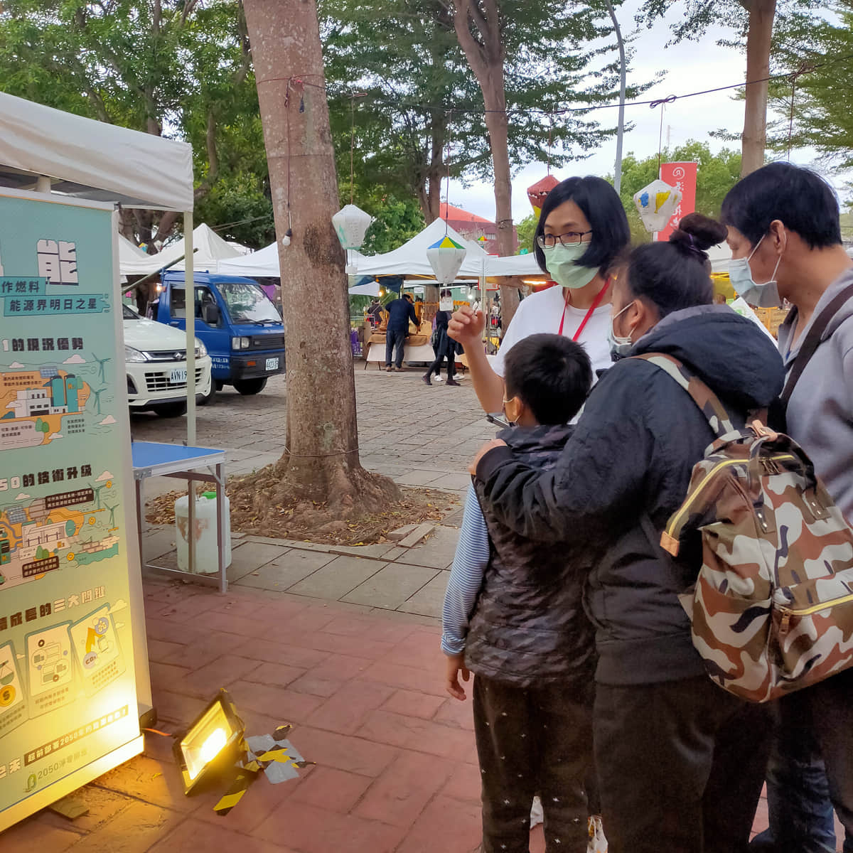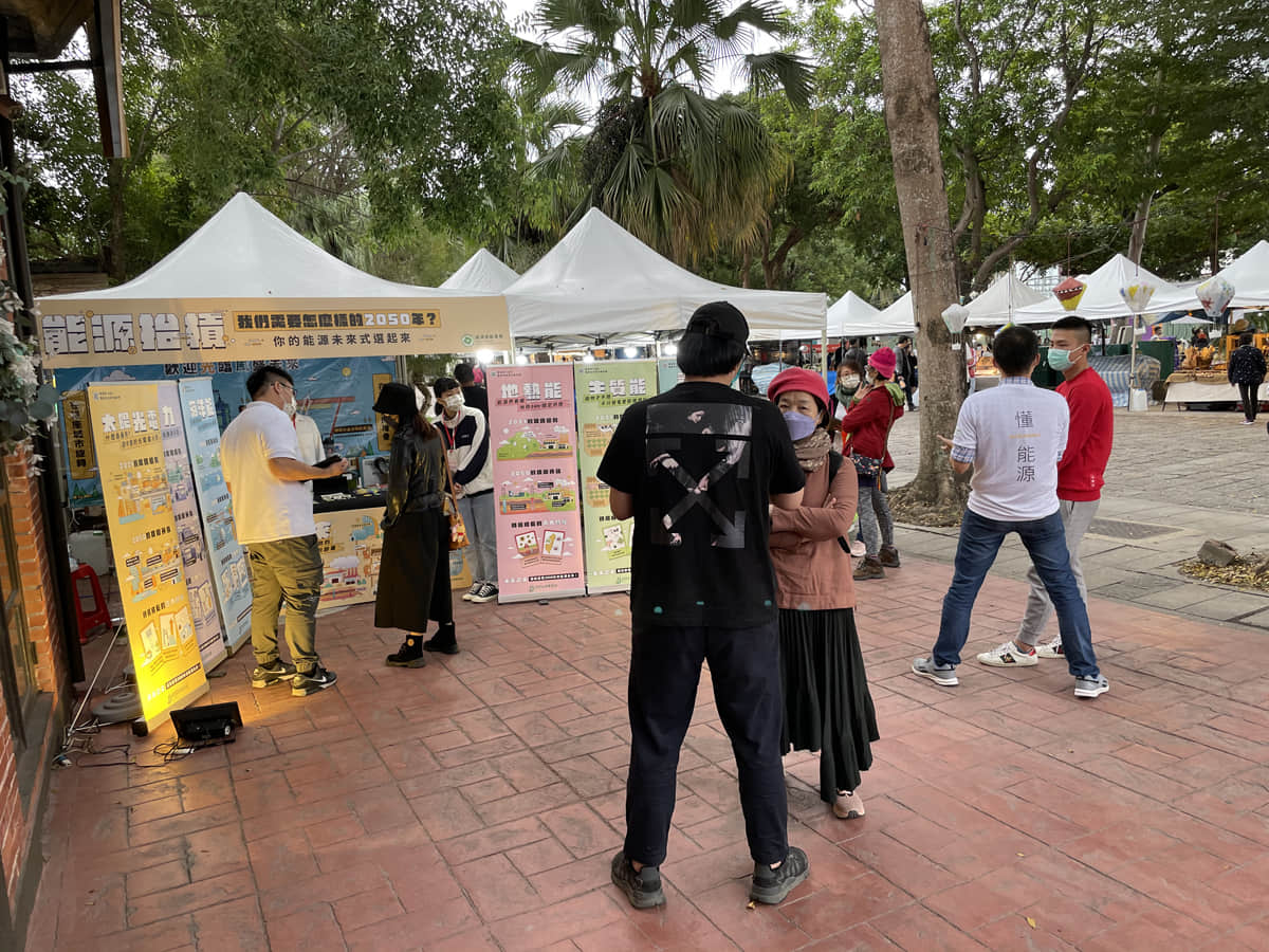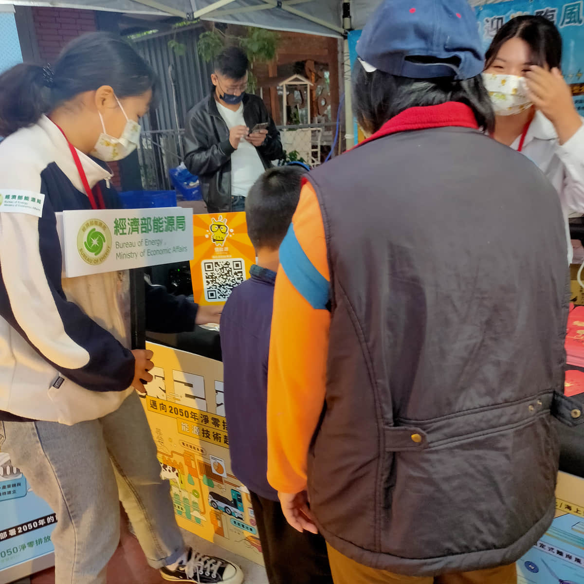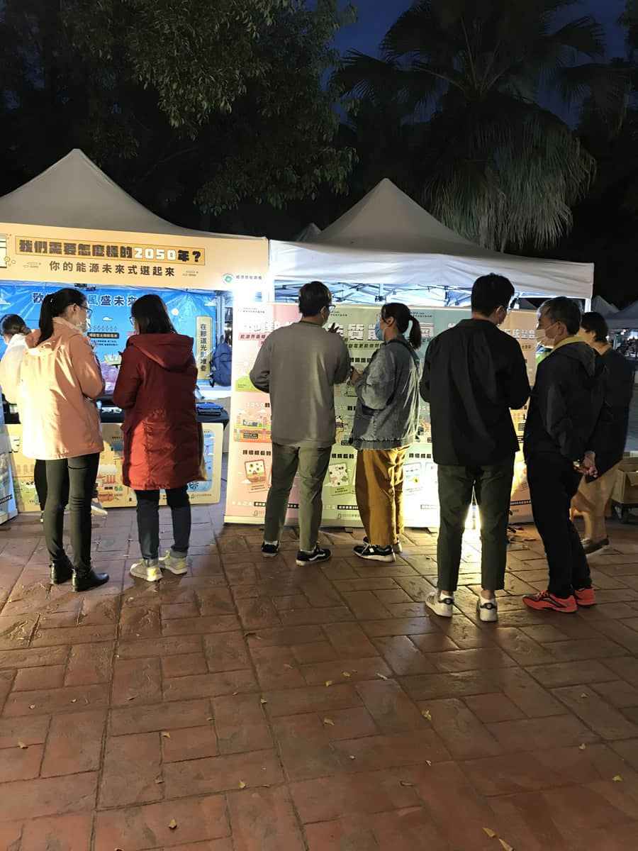 工作人員與民眾互動簡介低碳能源技術並詢問技術偏好與原因