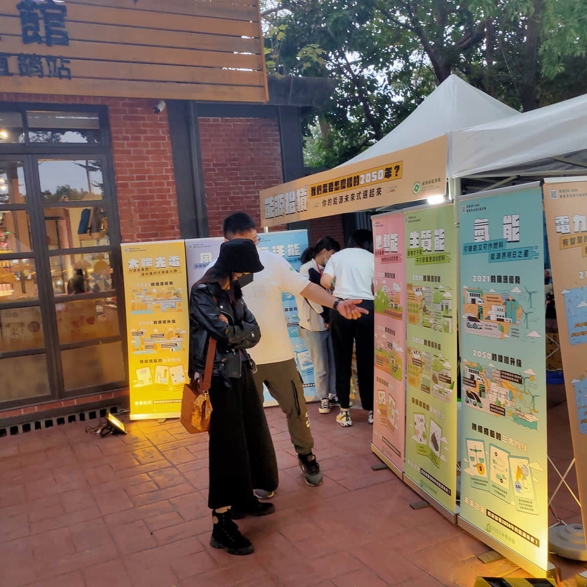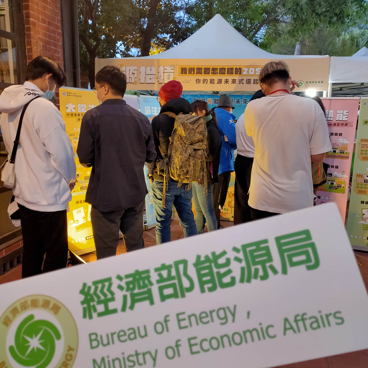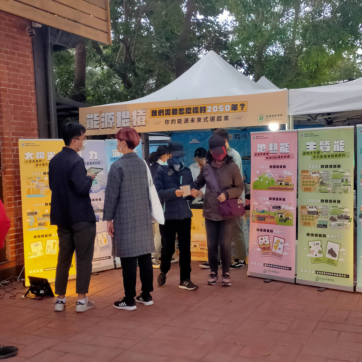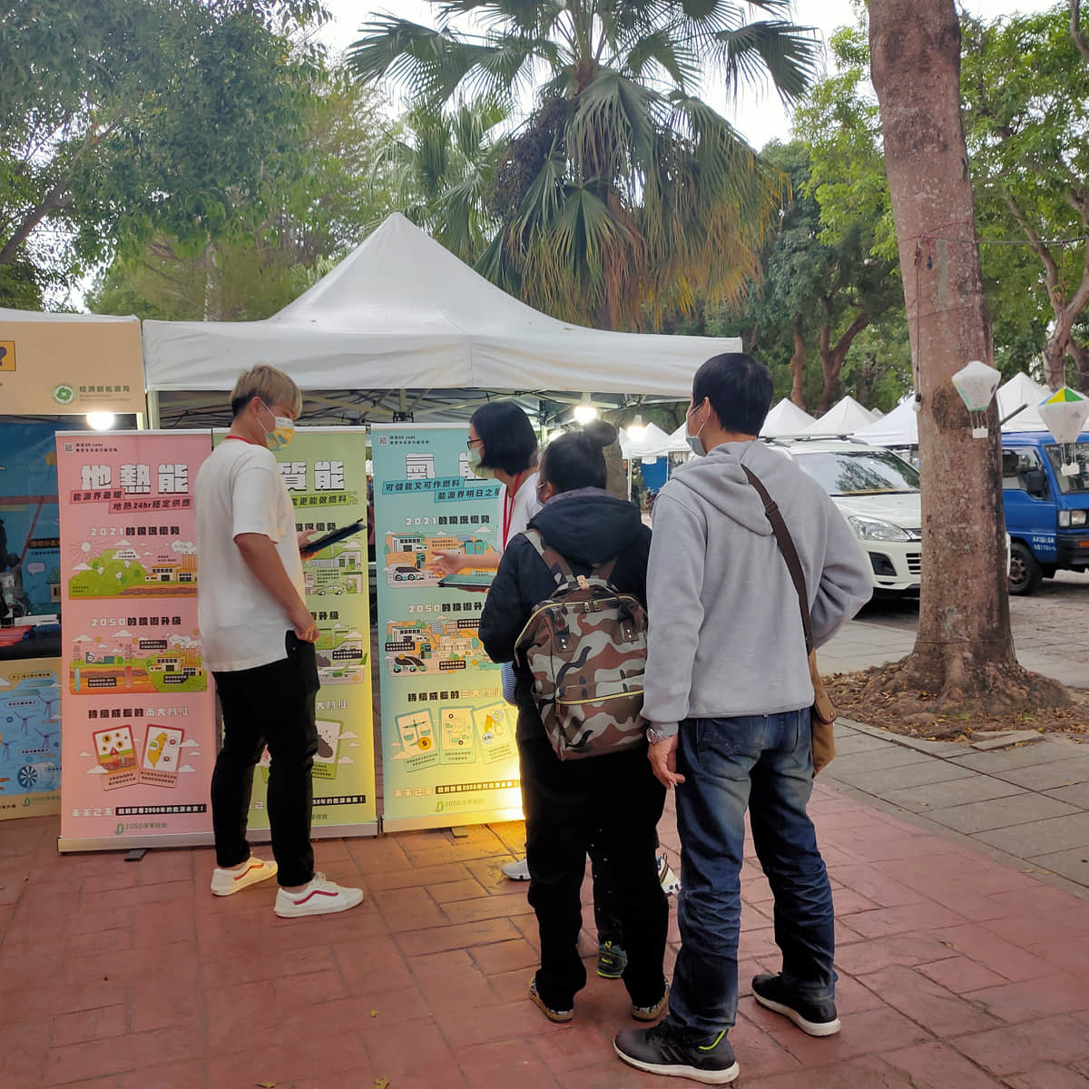 工作人員與民眾互動簡介低碳能源技術並詢問技術偏好與原因