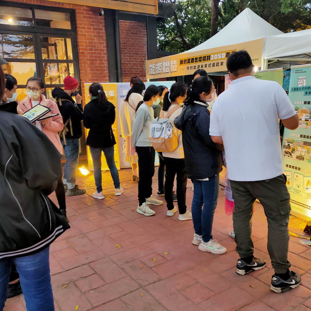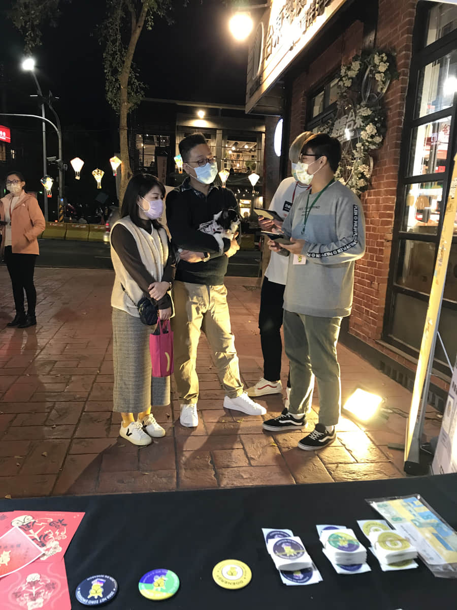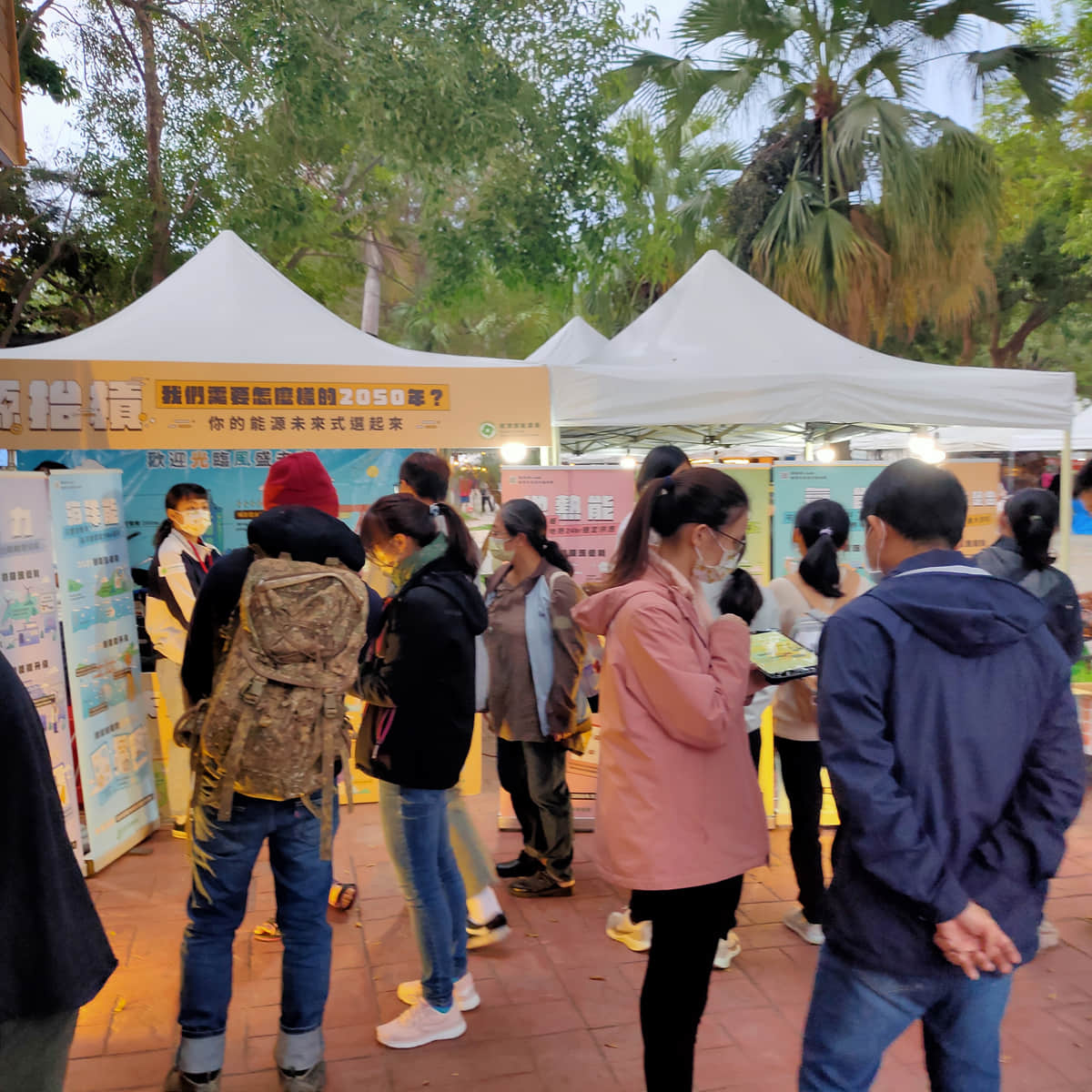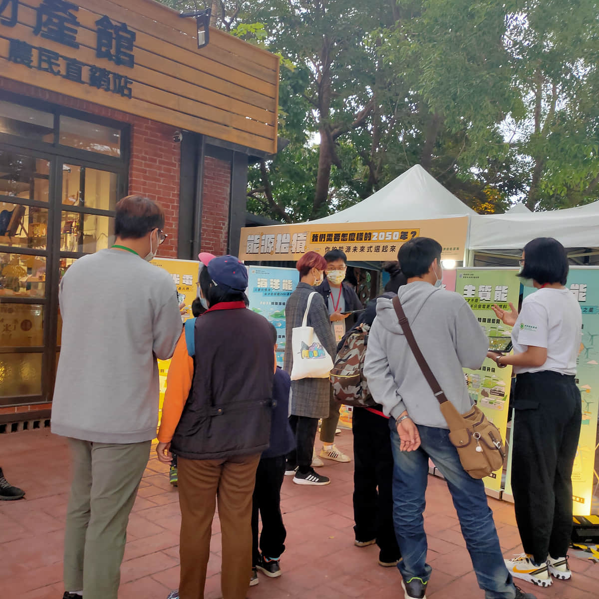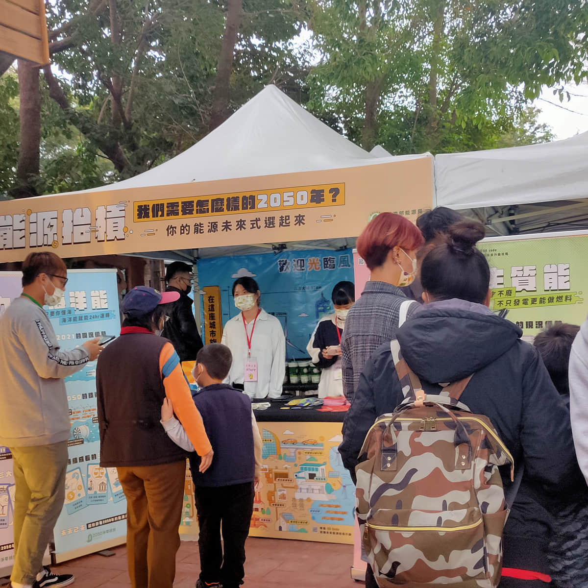 工作人員與民眾互動簡介低碳能源技術並詢問技術偏好與原因