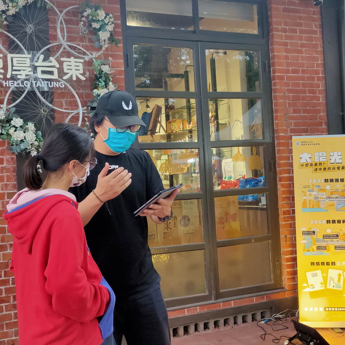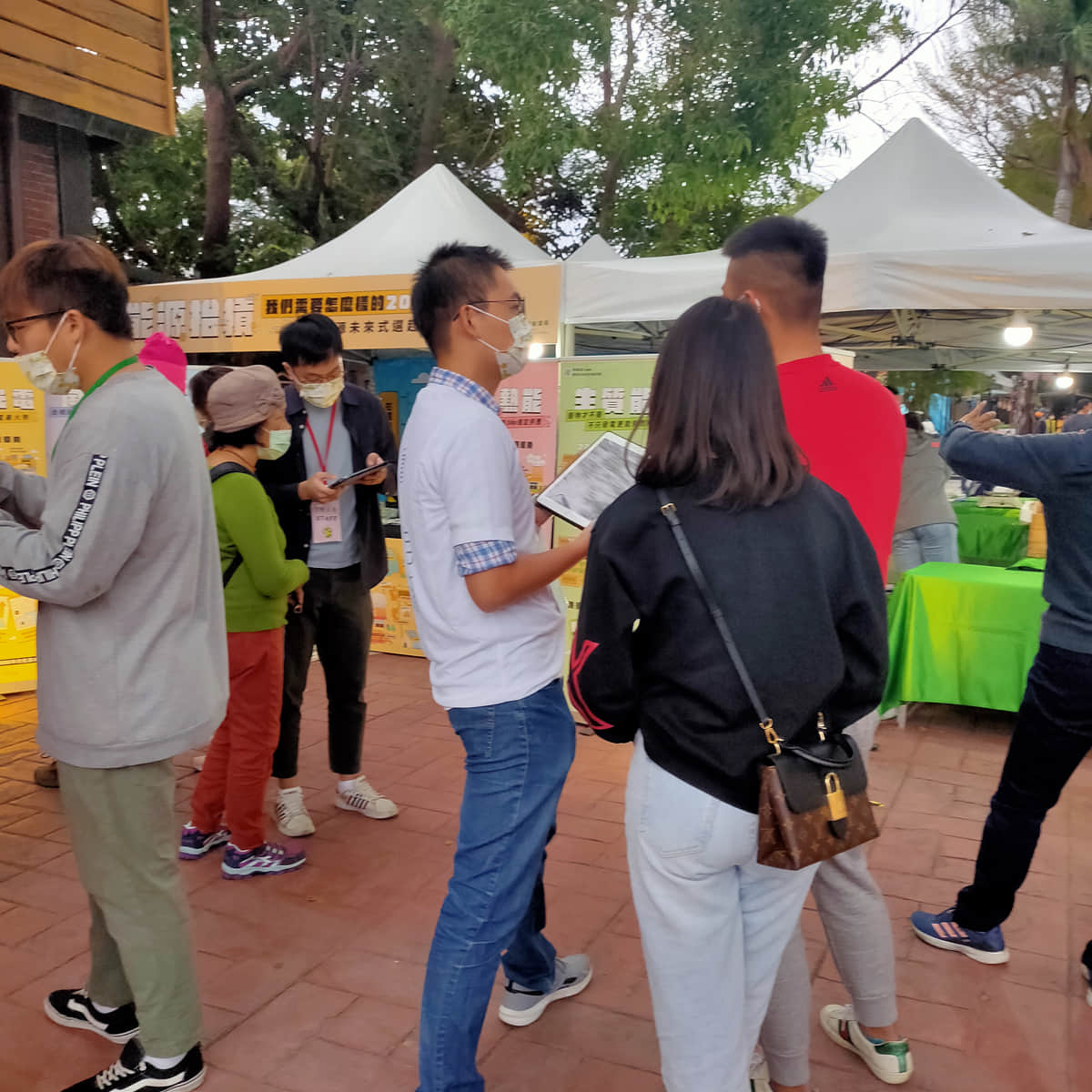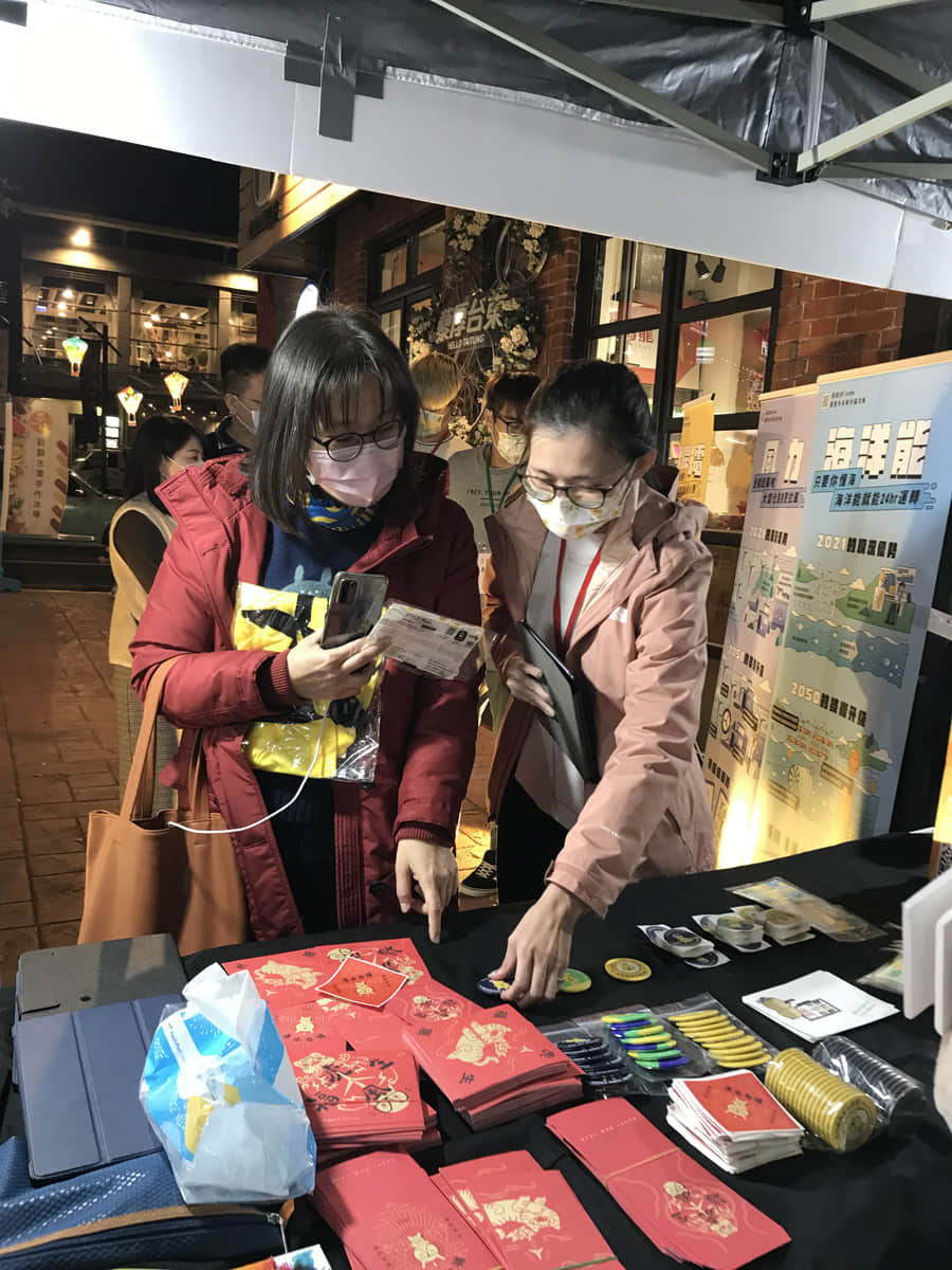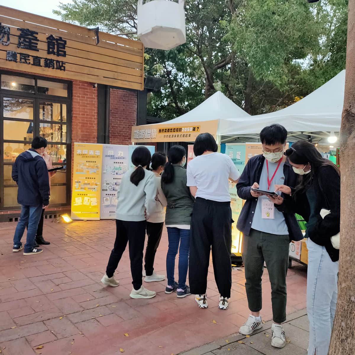 工作人員與民眾互動簡介低碳能源技術並詢問技術偏好與原因